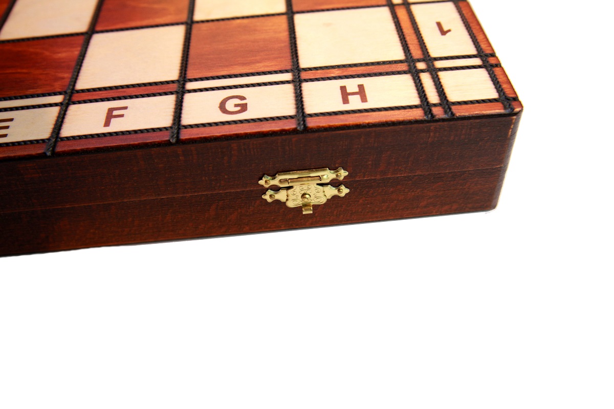 Шахматы «Йовиш» настоящей ручной работы, классического стильного дизайна без излишеств. Идеальное решение для тех, кто увлекается шахматами. Дизайн поля традиционный, но от классического его отличает то, что все клетки заключены в персональную рамку, сделанную методом выжига. Что придает набору определенный шарм и красоту. Размеры полотна в закрытом виде составляют 40,8х20,4х5 см, а в открытом виде равны 40,8х40,8х2,5 см. Изготовлены шахматы из высококачественной древесины – очень часто это порода яблони. Размер клетки 4х4 см. Внутренняя отделка доски включает обивку зеленым войлочным сукном, в котором имеются индивидуальные ячейки для хранения каждой фигуры по отдельности. Чтобы уберечь набор от потери фигур во время транспортировки или переноски, он оборудован двумя замочками. Шахматы польского производства, весом до 1,7 кг.