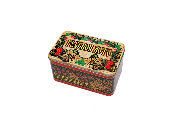 Русское лото представляет собой металлическую коробку с 24 карточками и пластиковыми фишками. Так же имеется 90 деревянных бочонков и красивый красные мешочек для перемешивания. Коробка занимает малое пространство, поэтому будет хорошо смотреться на любой полке в доме.